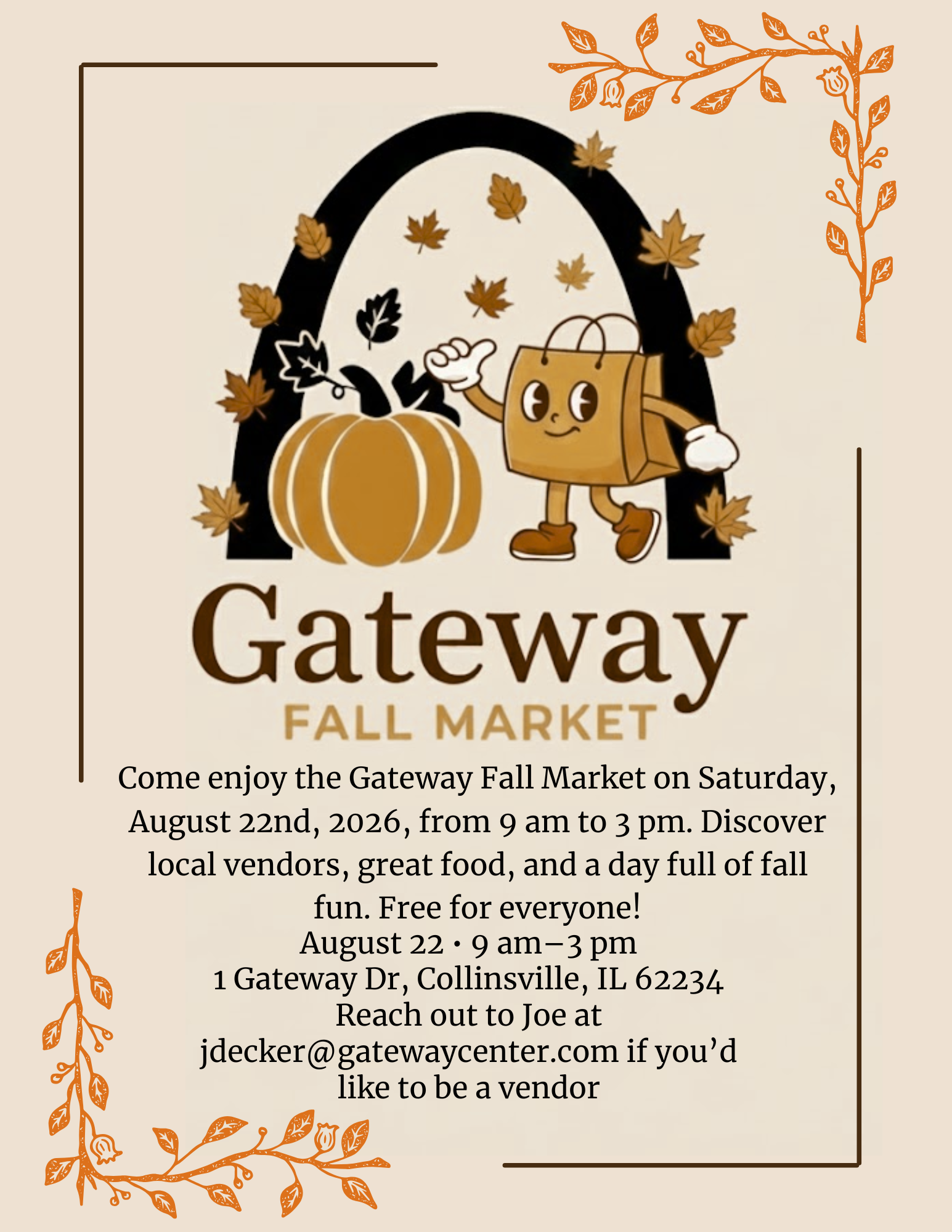 Interested in being a Vendor at the upcoming Gateway Fall Market? Please email the Show Producer Joe, or call our Front Office for more Information.